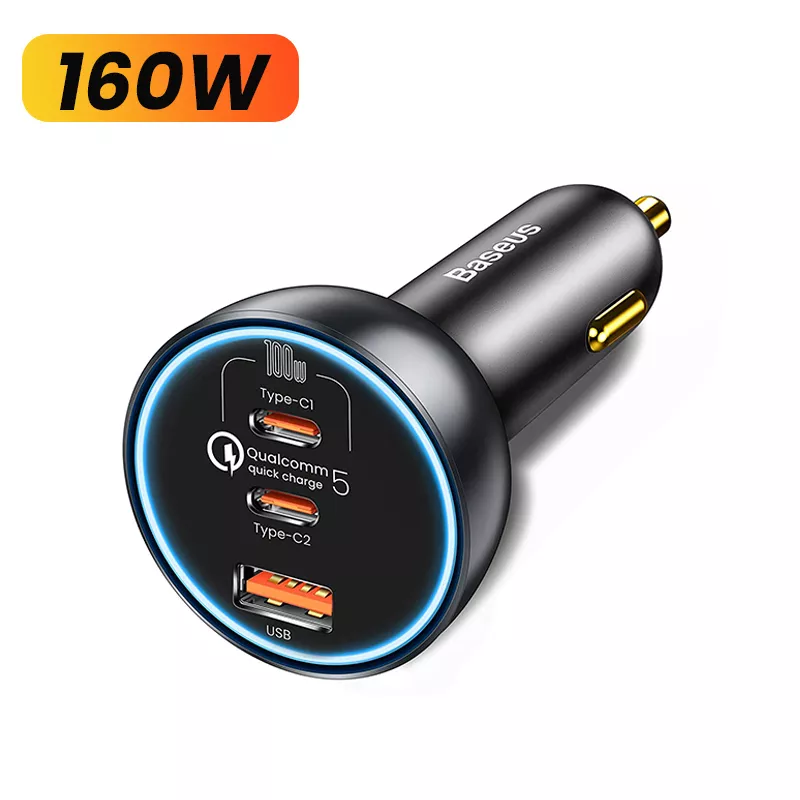 Say goodbye to dead batteries while on the road. This 160W fast car charger delivers exceptional speed, versatility, and performance—making it the perfect travel companion for commuters, road-trippers, and professionals. Equipped with one USB-A and two USB-C ports, this powerful charger supports a total output of 160W, allowing you to charge a laptop, phone, and another device at full speed—all at the same time.