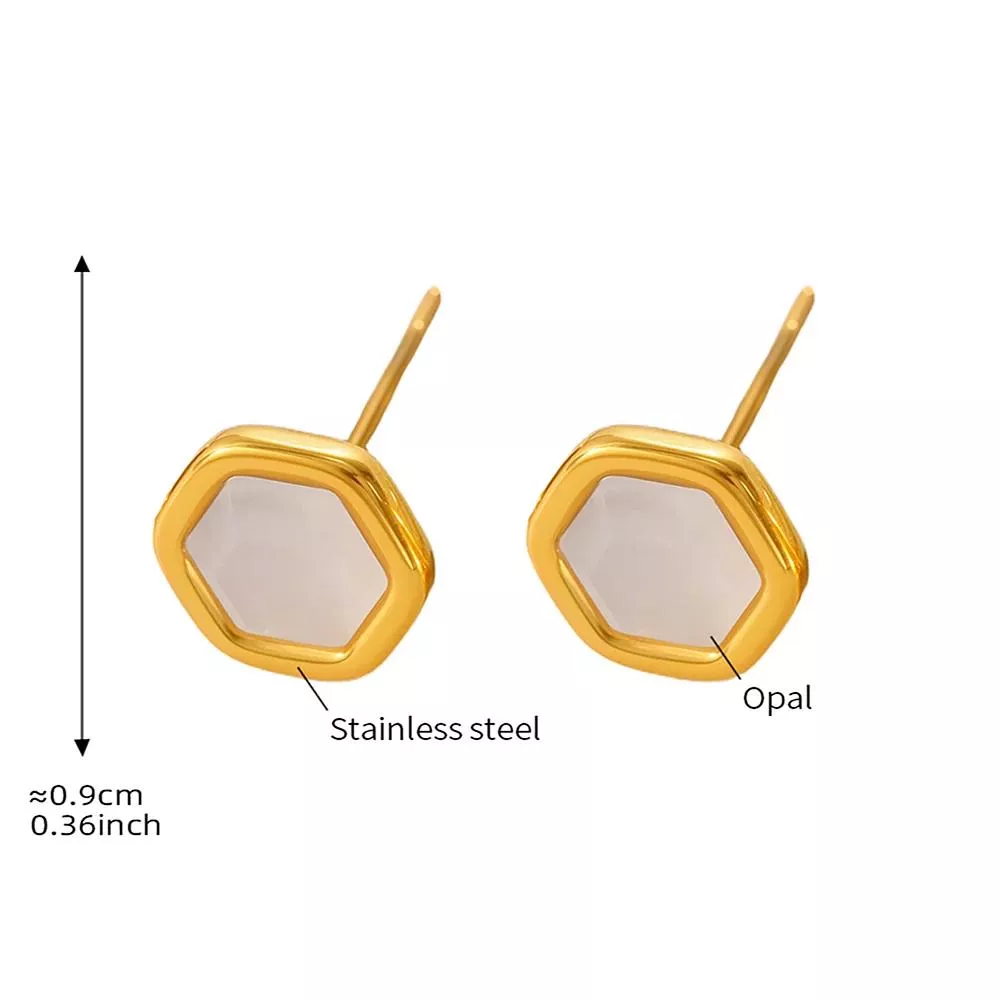 18K Gold Plated Hexagonal Opal Stud Earrings