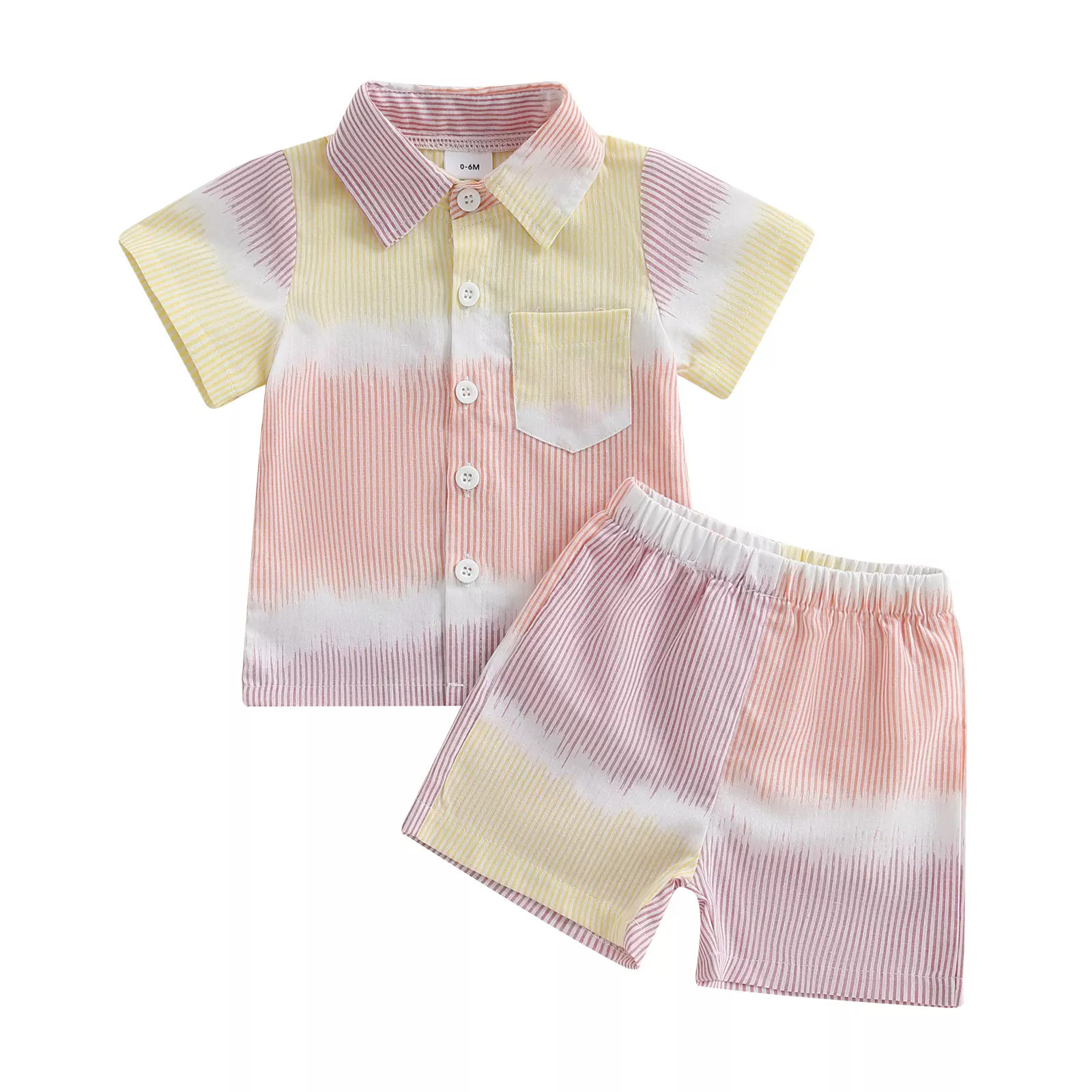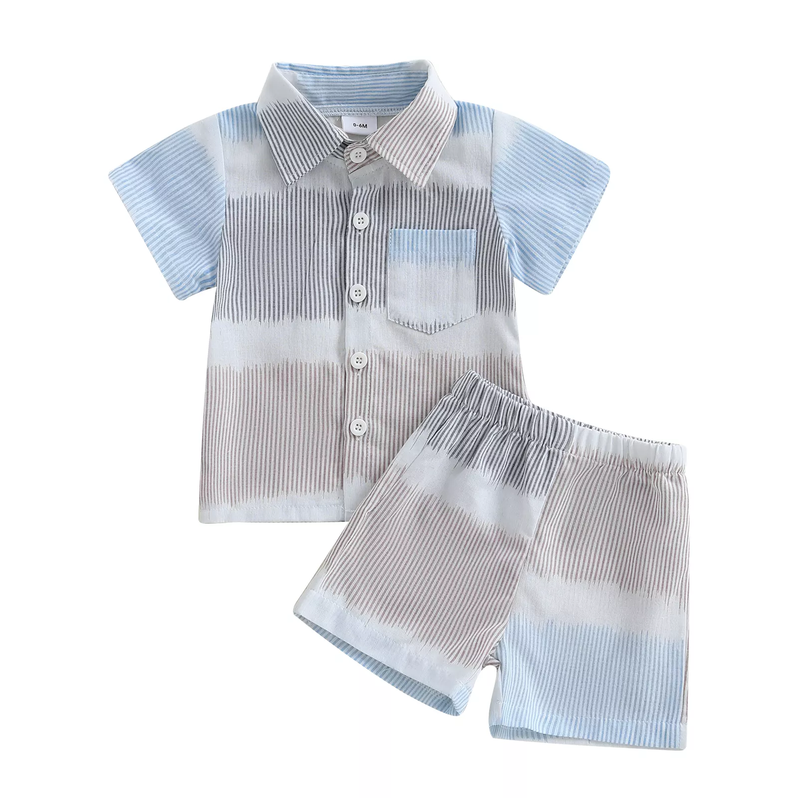 Looking for the perfect summer outfit that combines charm with everyday comfort? This adorable Baby Boy Gentleman Shorts Set is just what you need. Designed with a classic contrast striped short-sleeve shirt and matching elastic waist shorts, this 2-piece outfit will make your little one look dashing and feel comfy all day long. The stylish collared shirt pairs perfectly with the relaxed fit of the shorts, making it a must-have for warm weather events or casual outings.