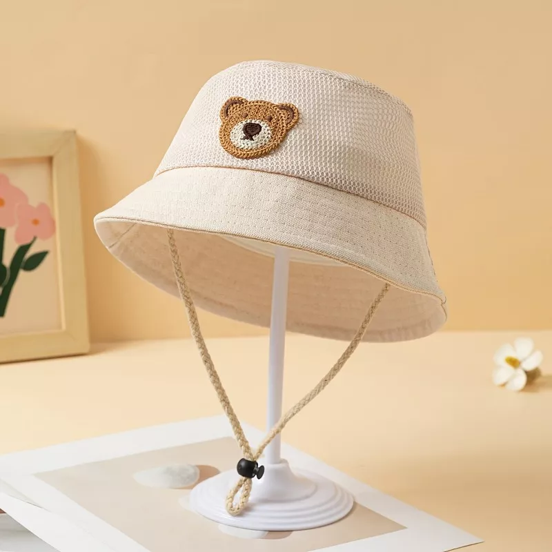 Breathable Bear Patch Bucket Hat for Summer Sun Protection