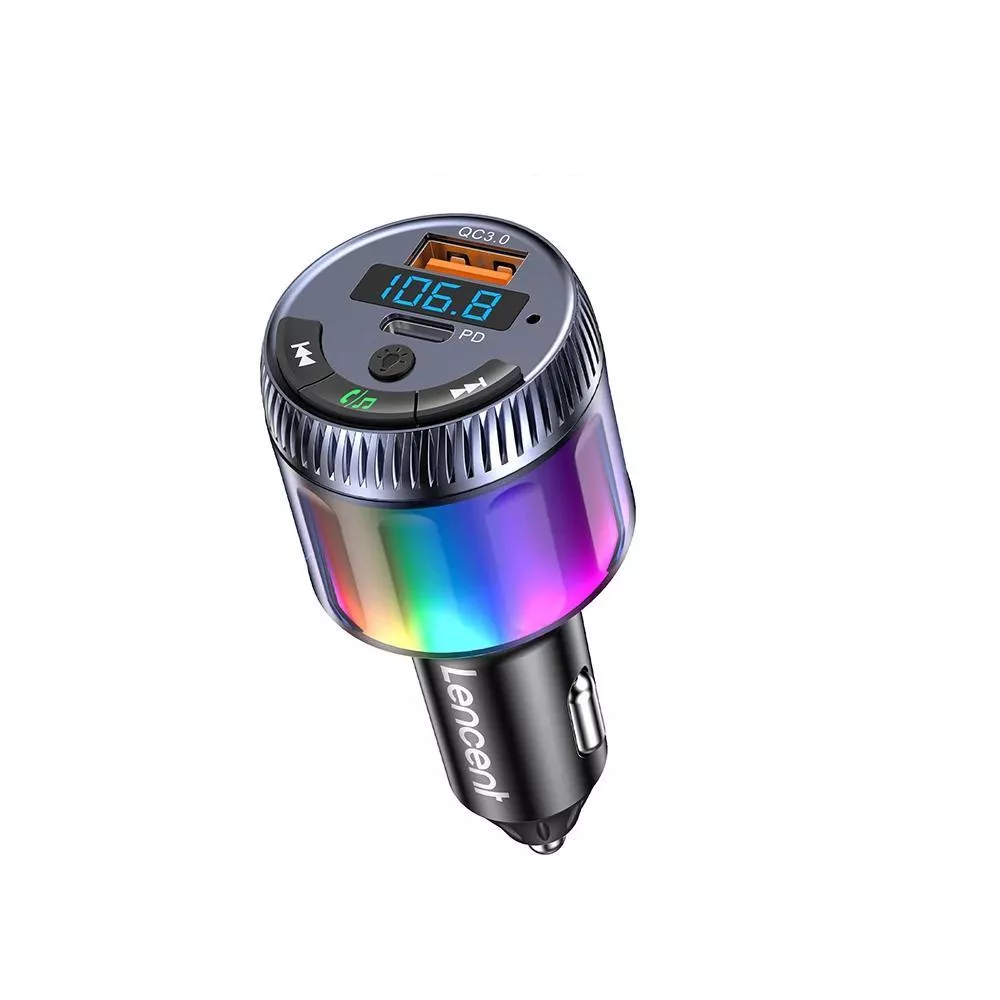 Bluetooth 5.3 FM Car Adapter with 48W PD & QC Fast Charger and LED Light