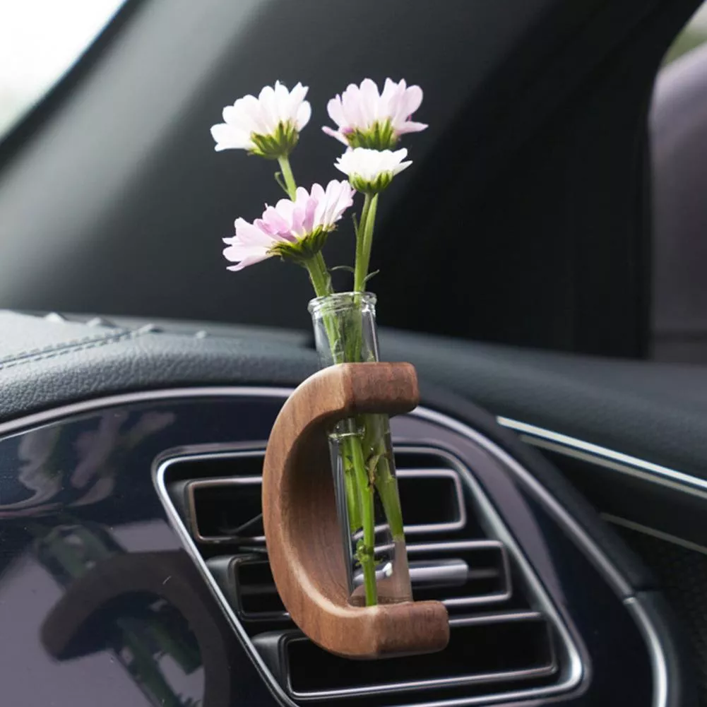 Wooden Car Flower Vase Clip Holder for Dashboard and Vent Decoration