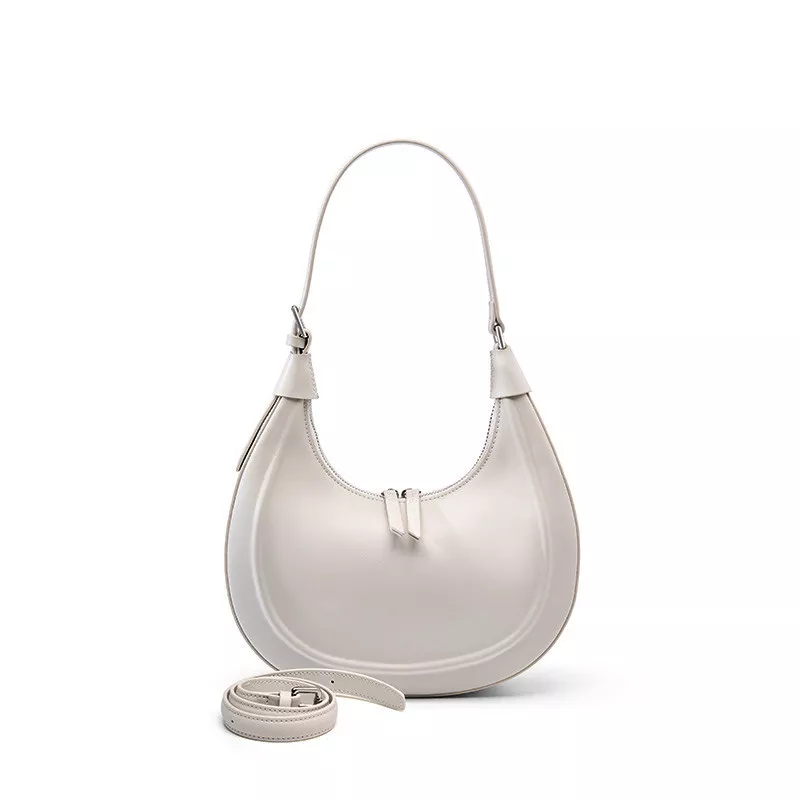 Step up your accessory game with this chic and modern half-moon shaped handbag, designed for the woman who loves elegance with a touch of boldness. Crafted from high-quality split cowhide leather and finished with a soft polyester lining, this compact yet spacious shoulder bag is the perfect addition to your wardrobe. Its sleek, minimalist silhouette complements both casual and sophisticated outfits, making it your new go-to bag for every occasion.