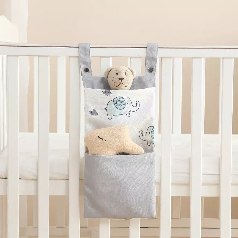 Made from high-quality cotton and free from harmful chemicals, this storage solution is not just safe for your baby but also soft to the touch and easy on the eyes. Its gentle design complements any crib bedding set and adds a touch of cozy charm to your nursery décor. Simply attach it to the crib rails and enjoy hands-free organization right where you need it most.