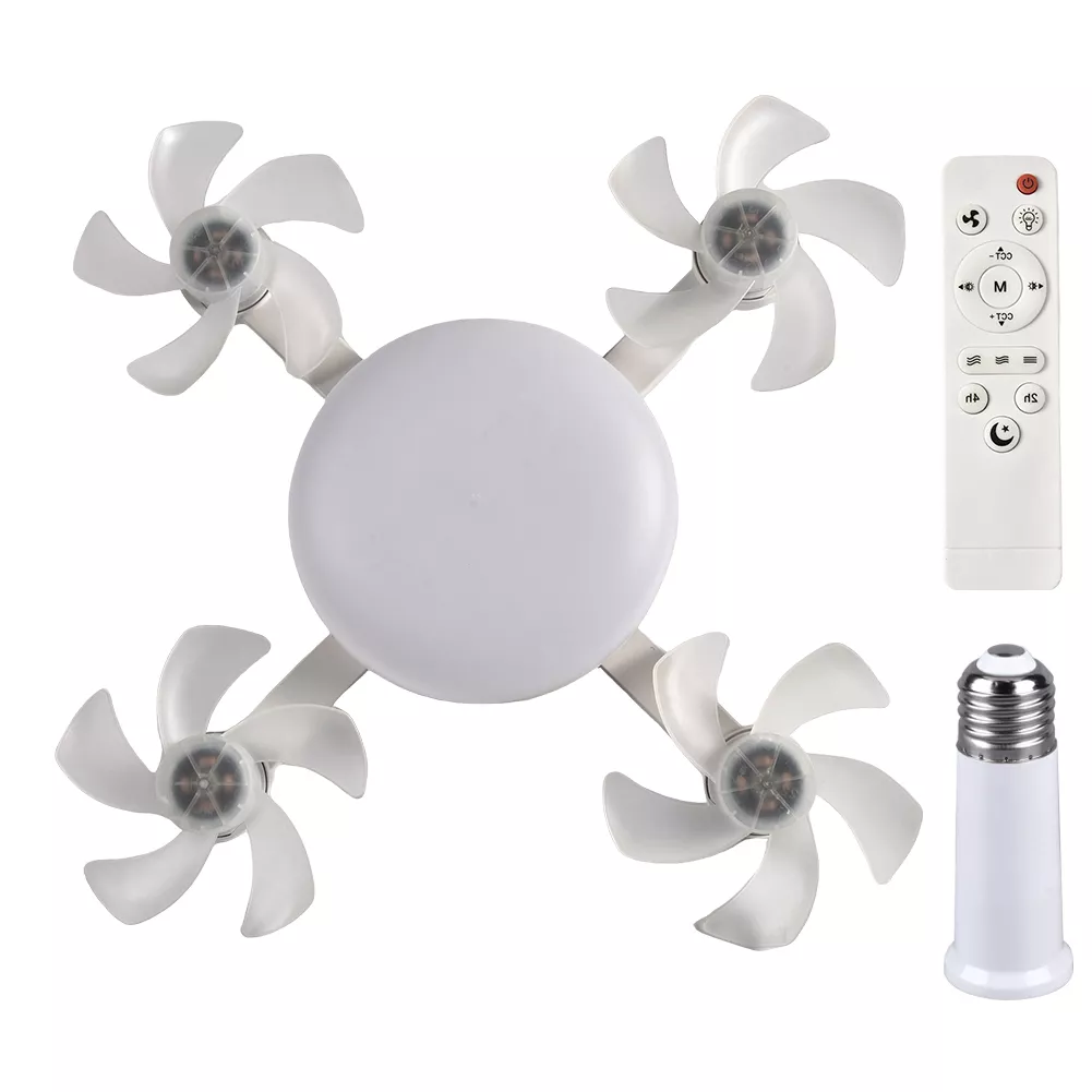 Electric Ceiling Fan with LED Light, Remote Control, Dimmable, Silent, E27