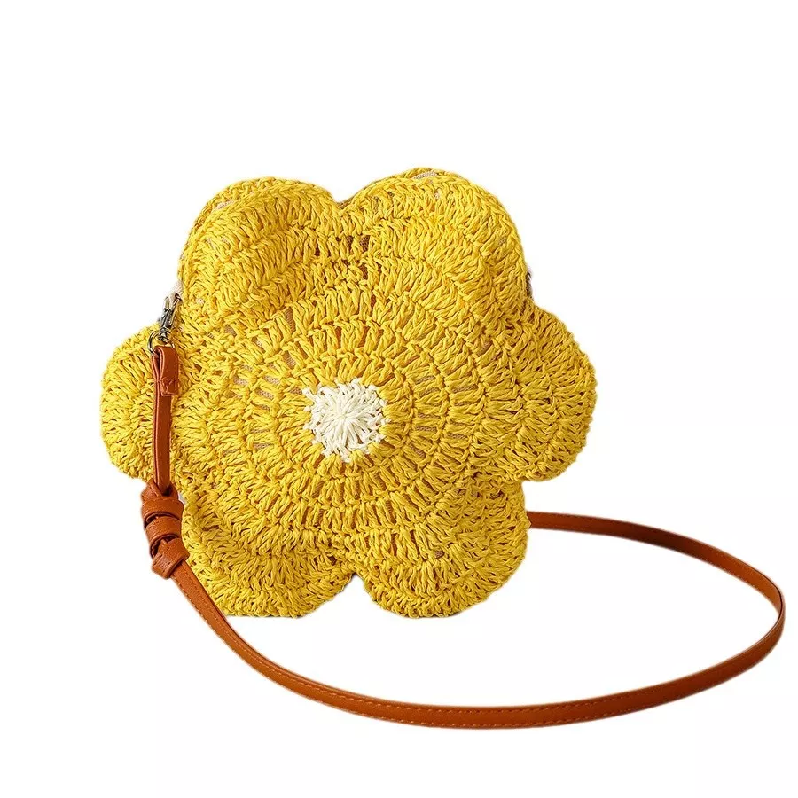 Hand-Woven Straw Shoulder Bag with Floral Pattern – Summer Beach Crossbody