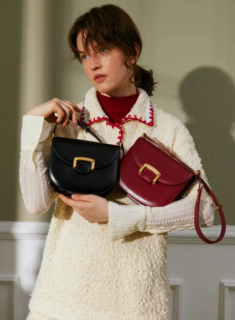 Retro Chic Saddle Crossbody Bag for Women – Split Leather Shoulder Purse