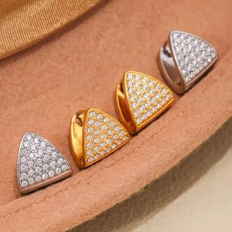 Gold Plated Triangle Hoop Earrings for Women with Shiny Zircon