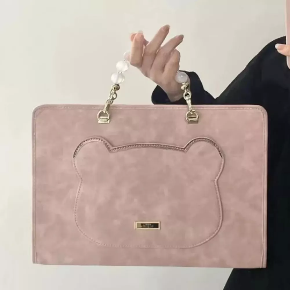 Pink PU Laptop Sleeve with Top Handle & Chain – 13/14/15.6 inch Protective Case
