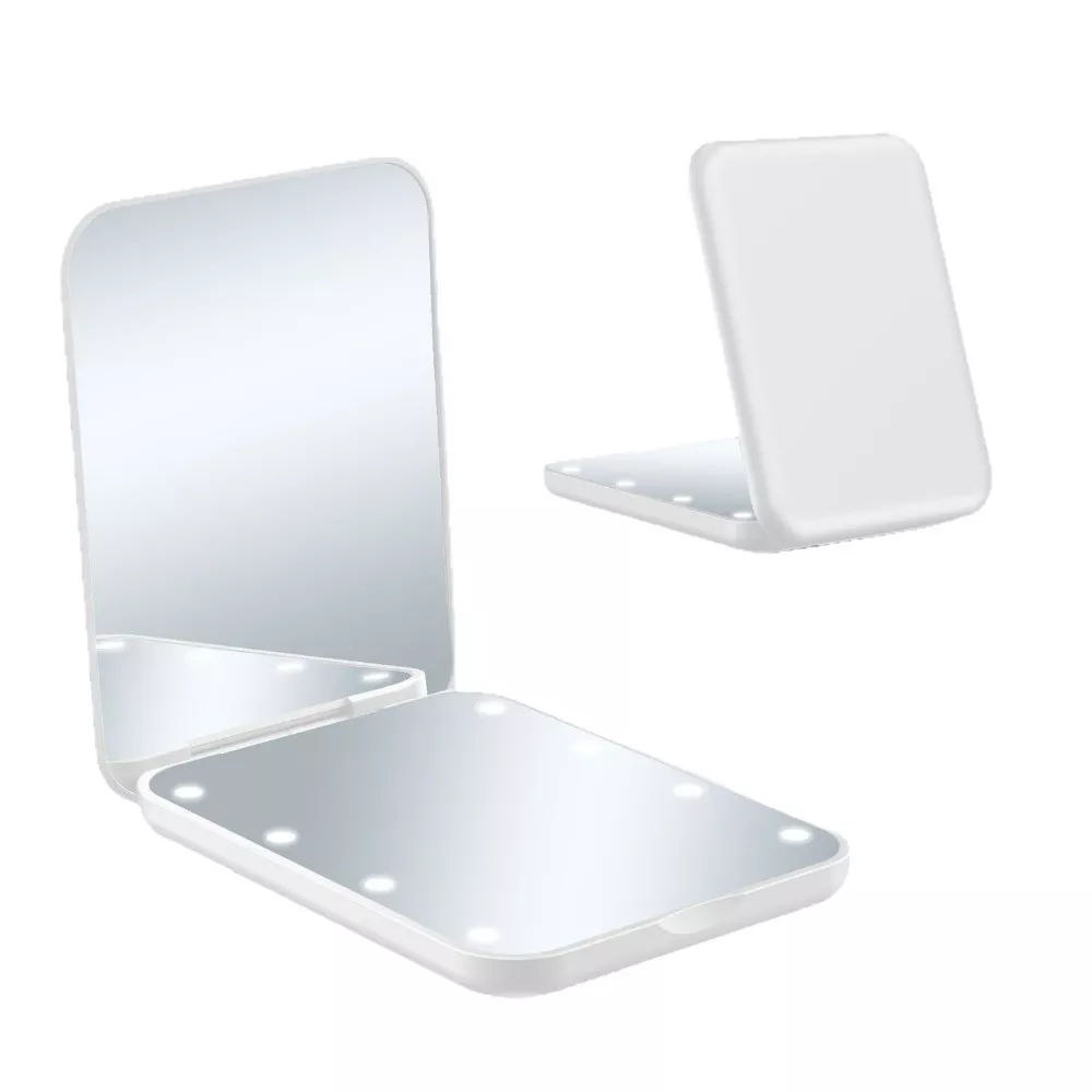 LED Folding Makeup Mirror with Lights – 2X Magnification, Pocket Size