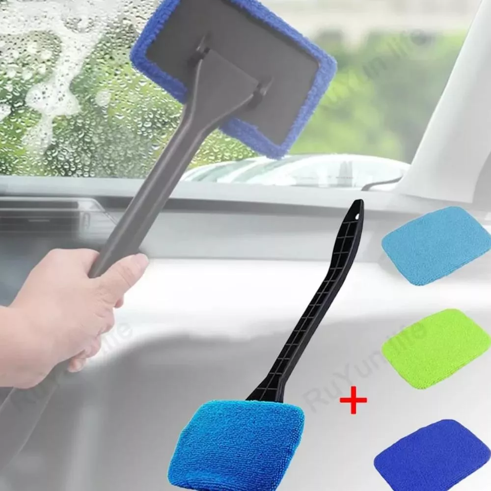 Auto Window Cleaner Brush Kit with Microfiber Pad for Car & Home Glass Cleaning