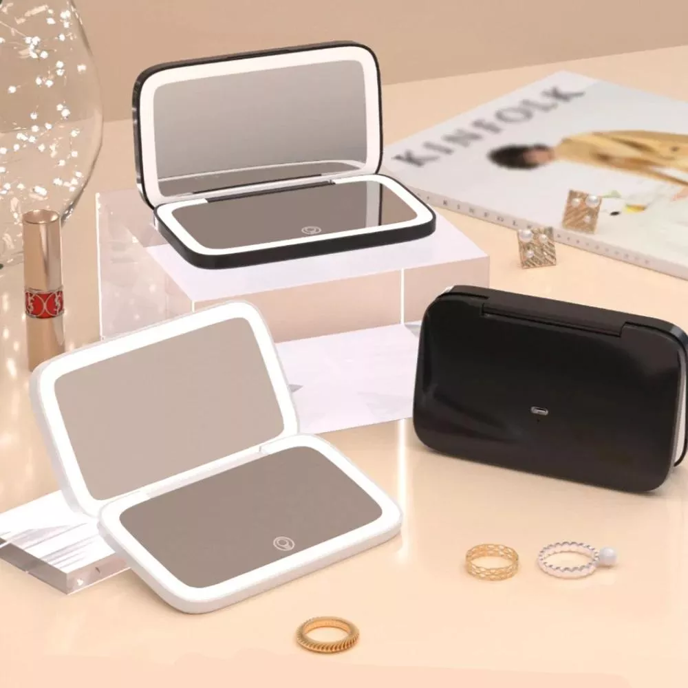 2-Sided LED Lighted Rechargeable Travel Makeup Mirror with 5X Magnification