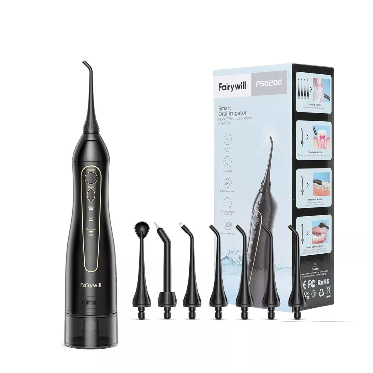 Rechargeable Portable Water Flosser Oral Irrigator with 300ML Tank & 3 Modes
