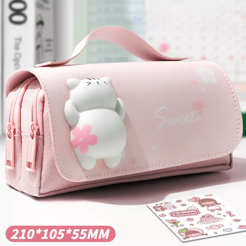 This multifunctional case is made from a soft blend of fabric and PU leather, making it both durable and easy to clean. Its large 3-layer design gives you plenty of space to hold up to 80 pens or pencils — plus room for markers, scissors, erasers, sticky notes, and more. Whether you’re heading to school, college, or just organizing your desk at home, this pencil case is the perfect blend of charm, function, and fun.