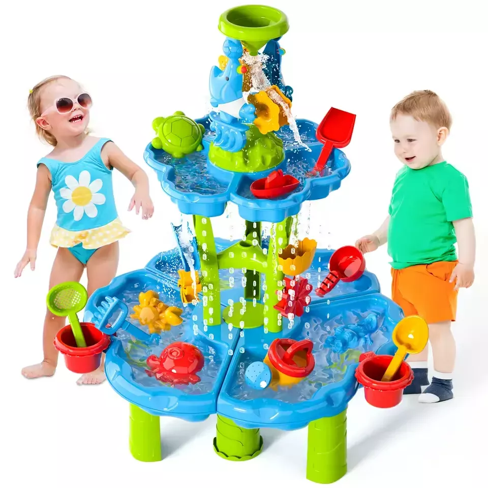 4-in-1 Kids Water & Sand Activity Table with Splash Tower – Outdoor Sensory Fun