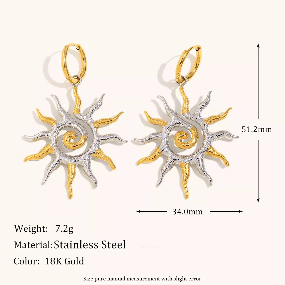 Mixed Color Sun-Shaped Stainless Steel Stud Earrings for Women