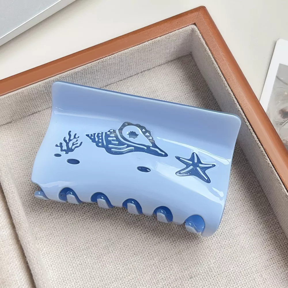 What sets this hair claw apart is its artistic blend of fashion and nature. The conch shell-inspired shape paired with a dreamy blue palette captures the beauty of the ocean in a single accessory. Whether you’re heading to a picnic, meeting friends, or just styling your hair for the day, this hair clip makes it easy to create an effortlessly chic look in seconds.