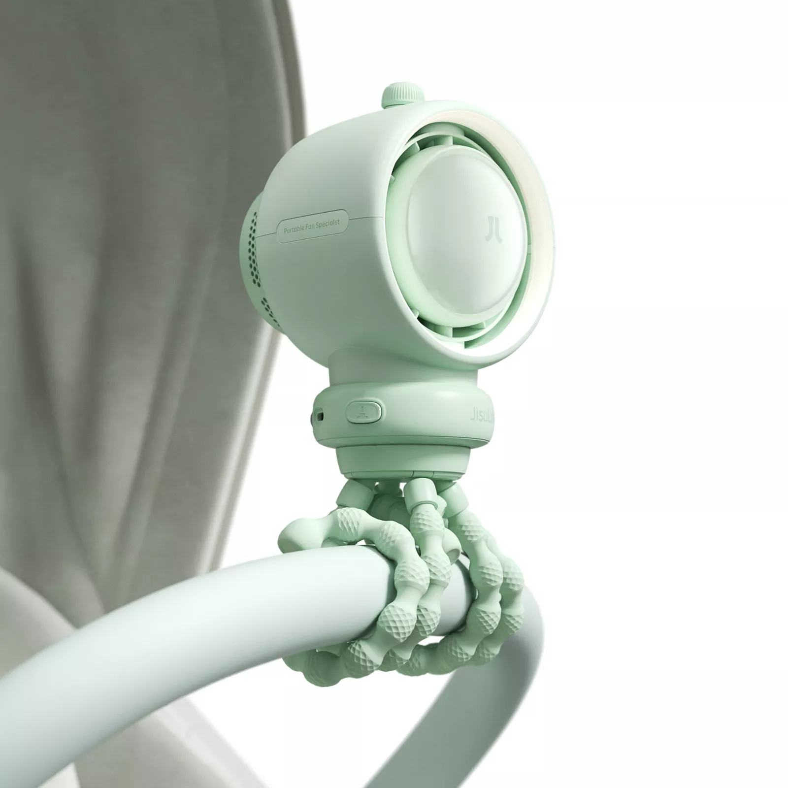 Its flexible, food-grade silicone bracket allows you to mount the fan safely on strollers, cribs, car seats, or even on your desk or bed frame. The whisper-quiet motor and soft breeze make it ideal for naptime, while the built-in LED light provides a soft glow for nighttime diaper changes or storytime.
