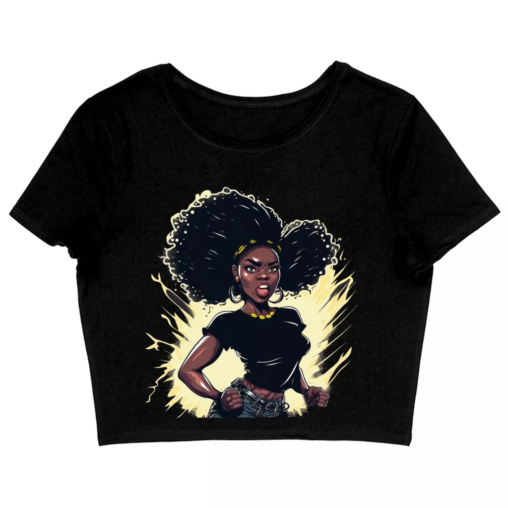 Black Girl Power Women’s Cropped T-Shirt – Printed Crop Top – Cartoon Crop Tee Shirt
