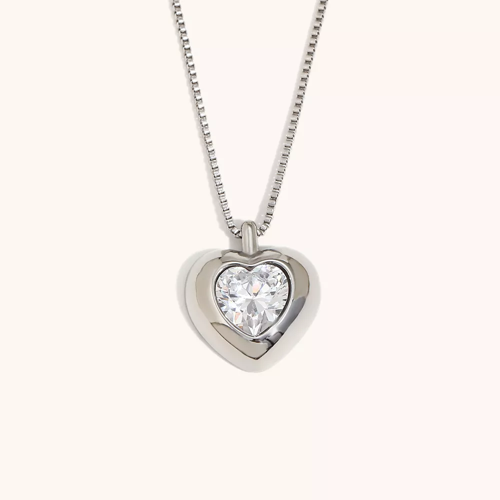 Delicate yet striking, this sparkling heart pendant necklace is the perfect blend of elegance and charm. Designed for women who love a hint of romance in their jewelry, this necklace features a dazzling cubic zirconia heart suspended from a sleek square box chain. The lustrous 18K gold-plated stainless steel adds a radiant finish that shines with every movement. Waterproof and hypoallergenic, it’s crafted for everyday beauty and special moments alike.