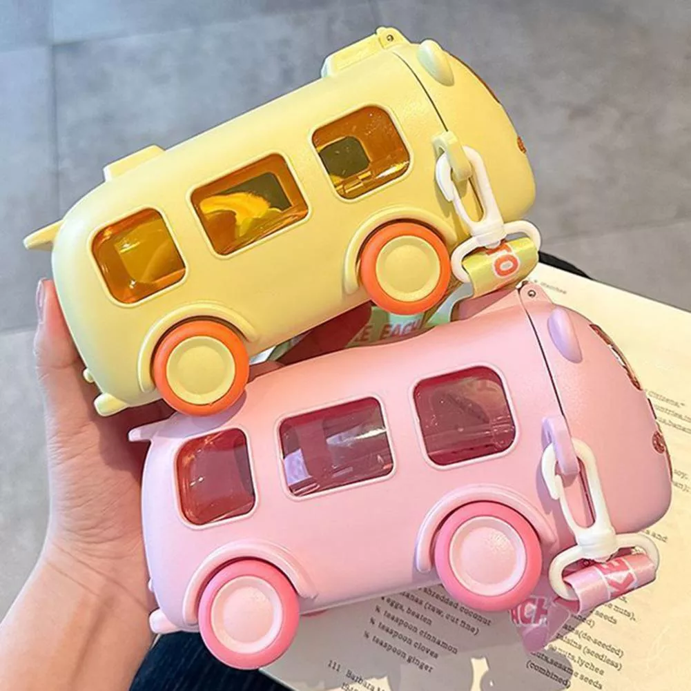Kids Cartoon Bus Water Bottle with Straw and Adjustable Strap – Leakproof 17oz