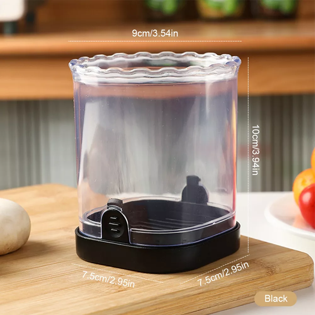 This slicer is perfect for busy mornings, party prep, healthy lunches, and everything in between. Its compact size (approximately 3 x 4 x 3.5 inches) makes it easy to store in any kitchen drawer or cabinet. With its large-capacity cup, you can slice multiple strawberries or grapes at once, saving time and effort while keeping your kitchen neat and organized.