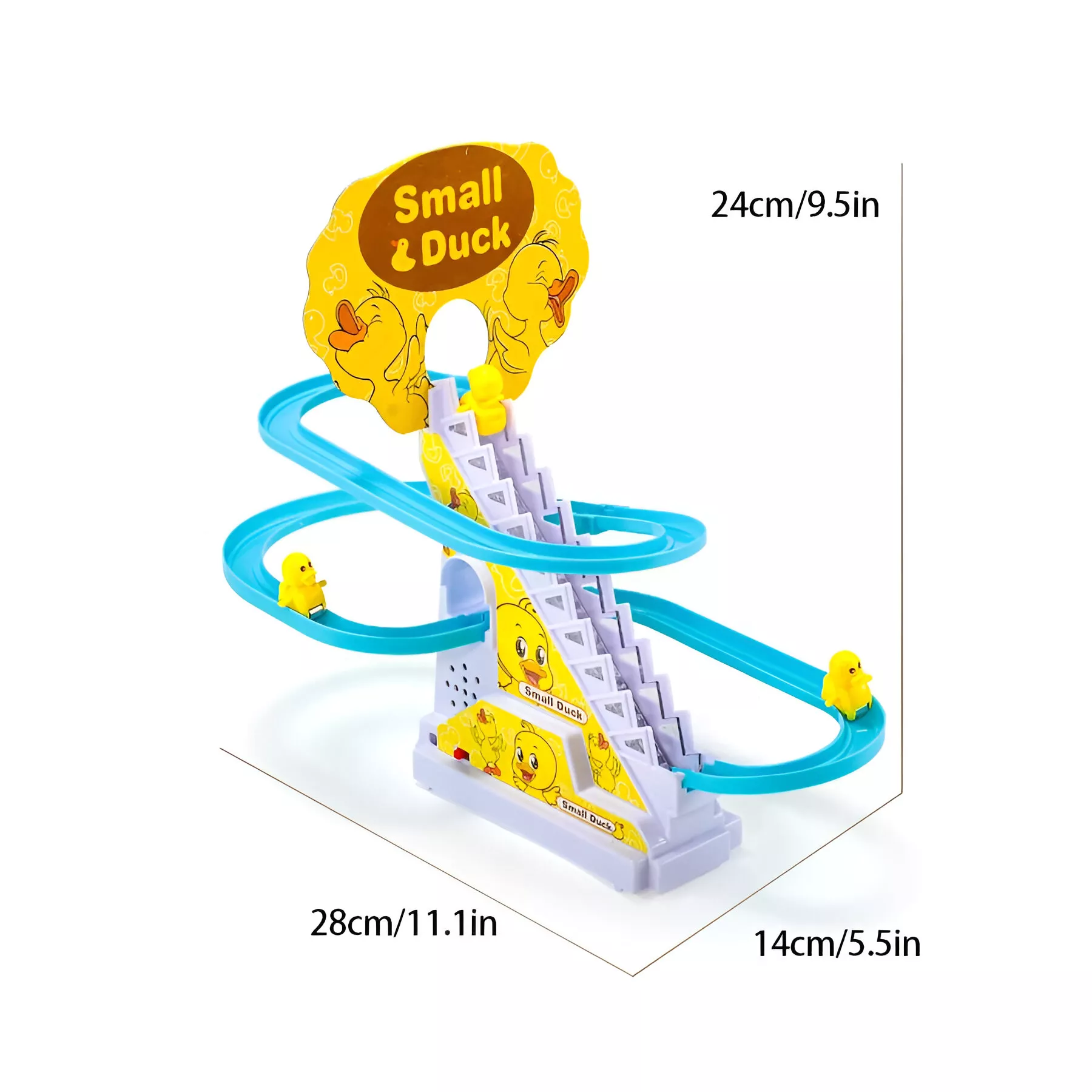 Turn playtime into a delightful learning adventure with the Stair-Climbing Musical Duck Toy — the perfect combination of entertainment and education for curious little minds. Watch as colorful ducks waddle up the stairs and slide down the track in an endless loop, all while cheerful music plays and lights flash in sync. This mesmerizing toy keeps kids engaged for hours, stimulating both their imagination and growing minds.
