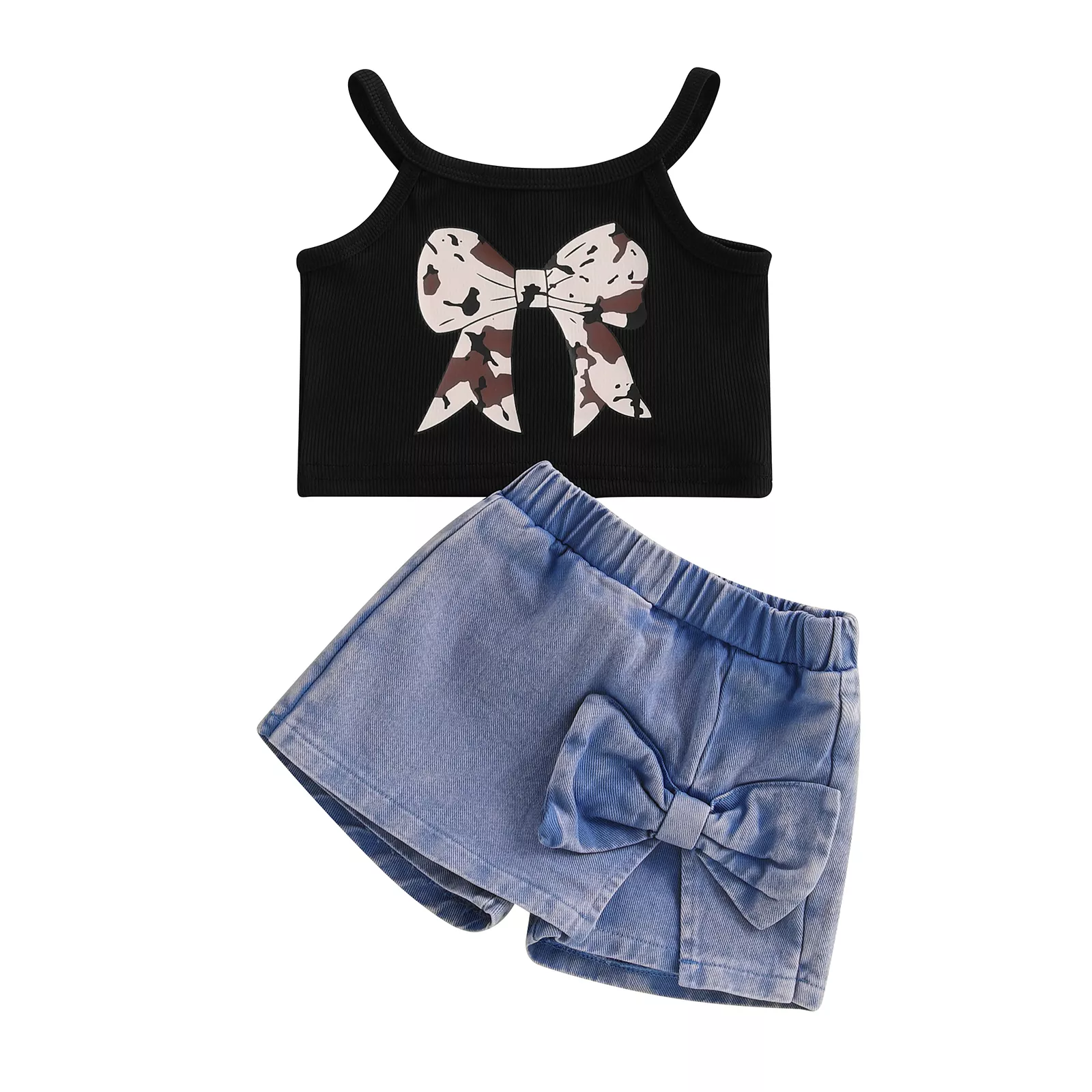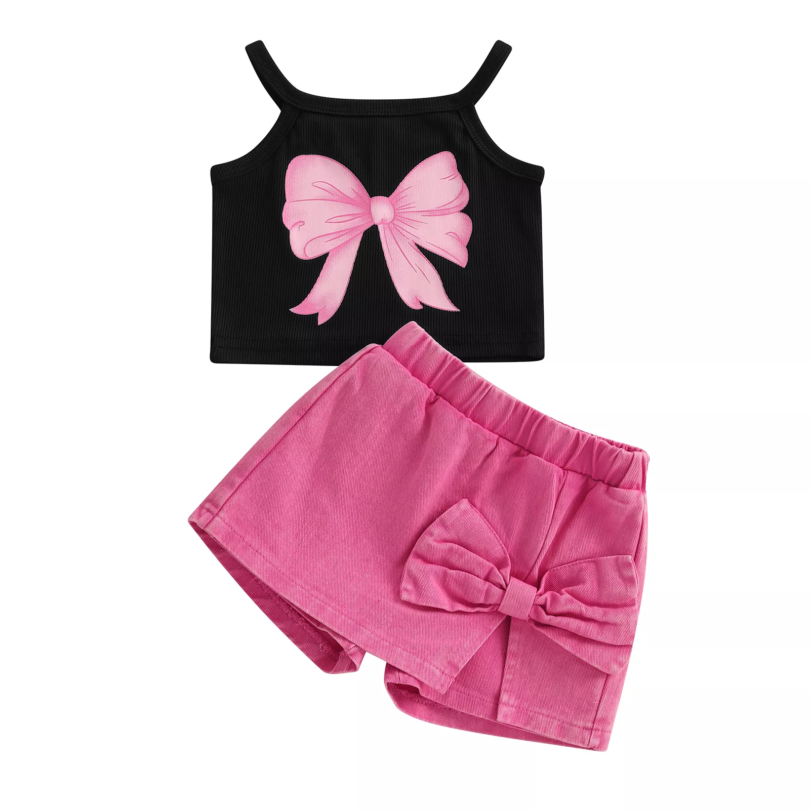 Make your little girl’s summer wardrobe pop with this charming Toddler Girl Summer Bow Top & Denim Skort Set. Designed with playful details and comfy materials, this 2-piece outfit is perfect for sunny days, family outings, or casual playdates. The sleeveless spaghetti strap top features a sweet bow print that adds a touch of girly charm, while the solid color denim skort (skirt with attached shorts) gives her the freedom to move with confidence and style. Whether it’s a day at the park or a family gathering, this outfit will have her looking cute and feeling comfortable all day long.