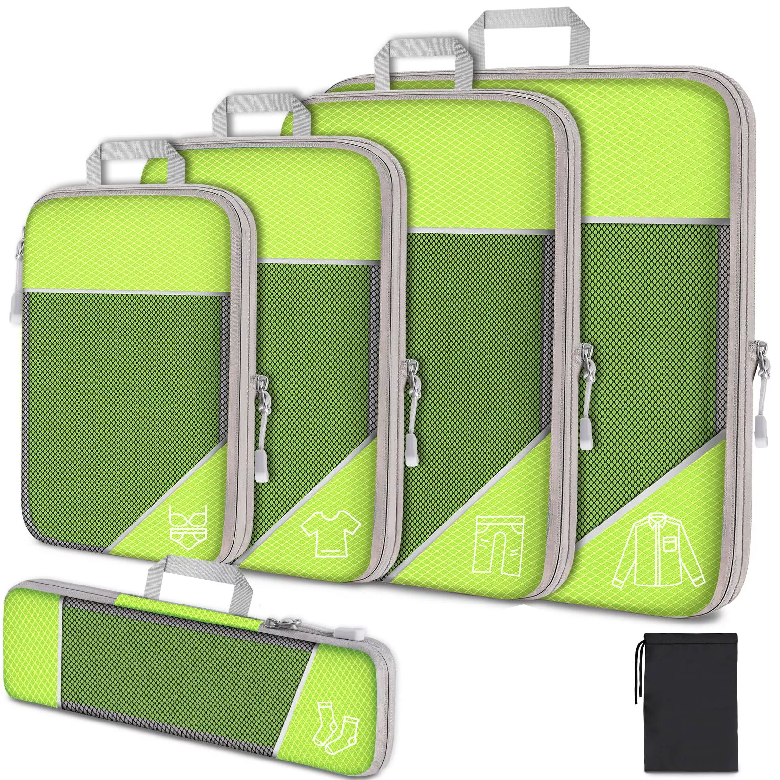 These organizers are crafted from durable, eco-friendly polyester that’s built to last and gentle on the environment. The compressible design allows you to pack more by simply rolling your clothes and zipping the bag shut to compress the contents. Mesh top panels make it easy to see what’s inside and provide ventilation to keep your items fresh. The set includes various sizes, including a dedicated shoe bag and drawstring pouch for added convenience. Each piece is lightweight yet sturdy—ideal for both short trips and extended vacations.