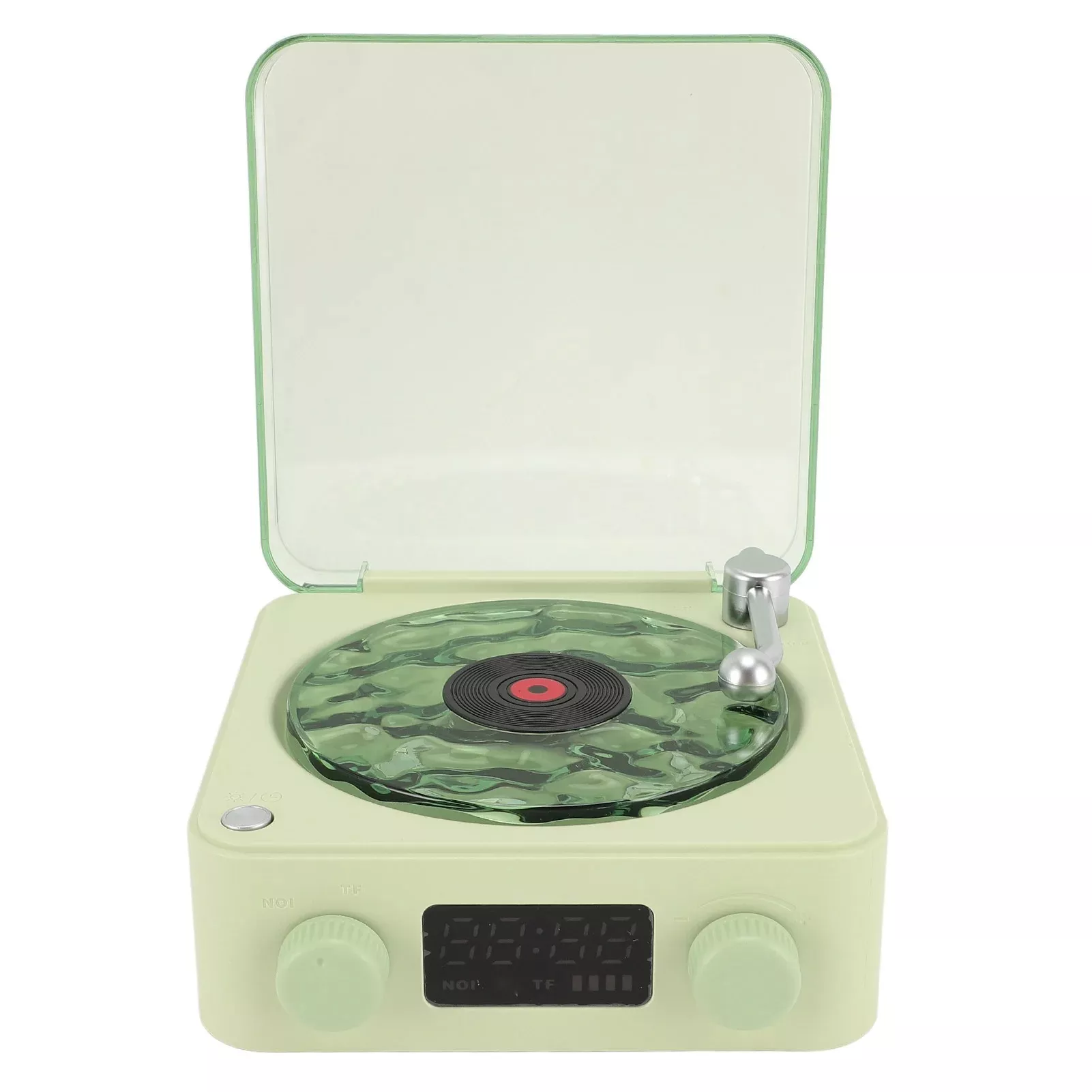• Vintage phonograph design with a clear water ripple turntable