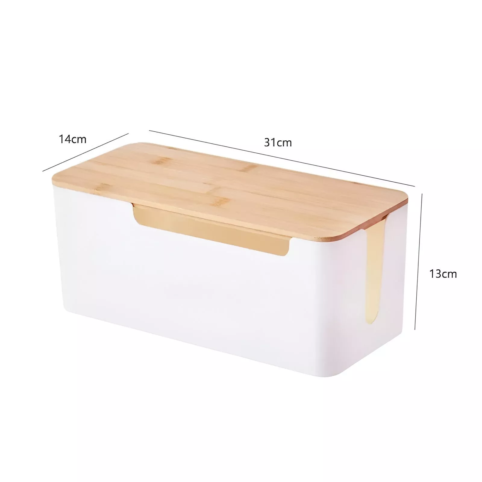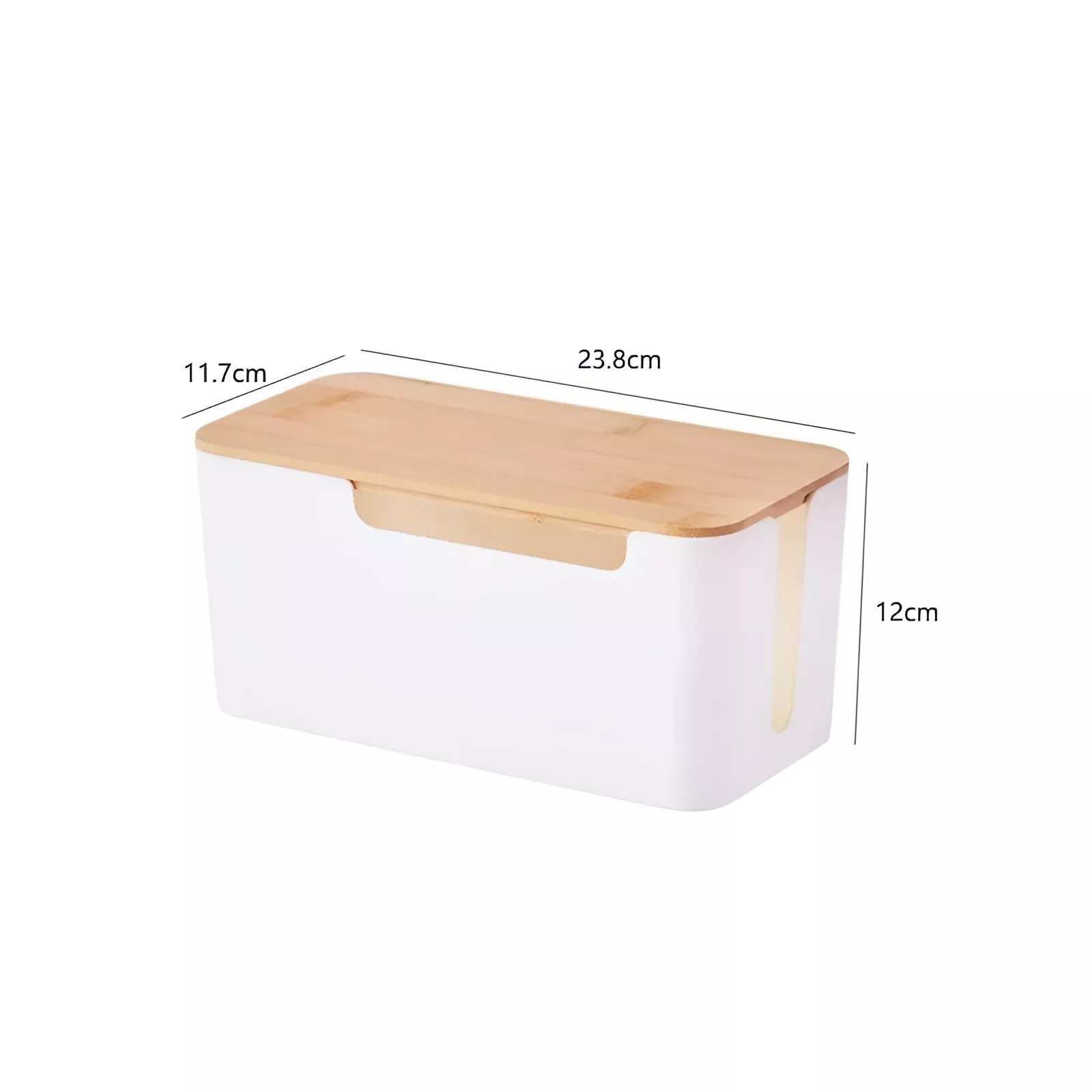 Crafted from a combination of high-quality wood and durable plastic, this storage box offers both style and strength. It’s available in two sizes — 9.4 x 4.6 x 4.7 inches and 12.2 x 5.5 x 5.1 inches — so you can choose the right fit for your needs. Whether you use it at home, in the office, or in a shared workspace, this box helps keep your cables tucked away safely and your power strips dust-free.