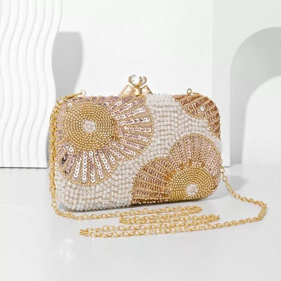 Elegant Diamond Beaded Evening Clutch Bag with Chain for Women