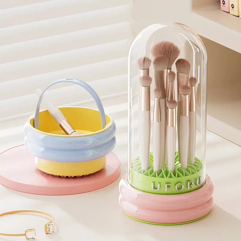 Dustproof Makeup Brush & Sponge Organizer with Hanging Drying Holder